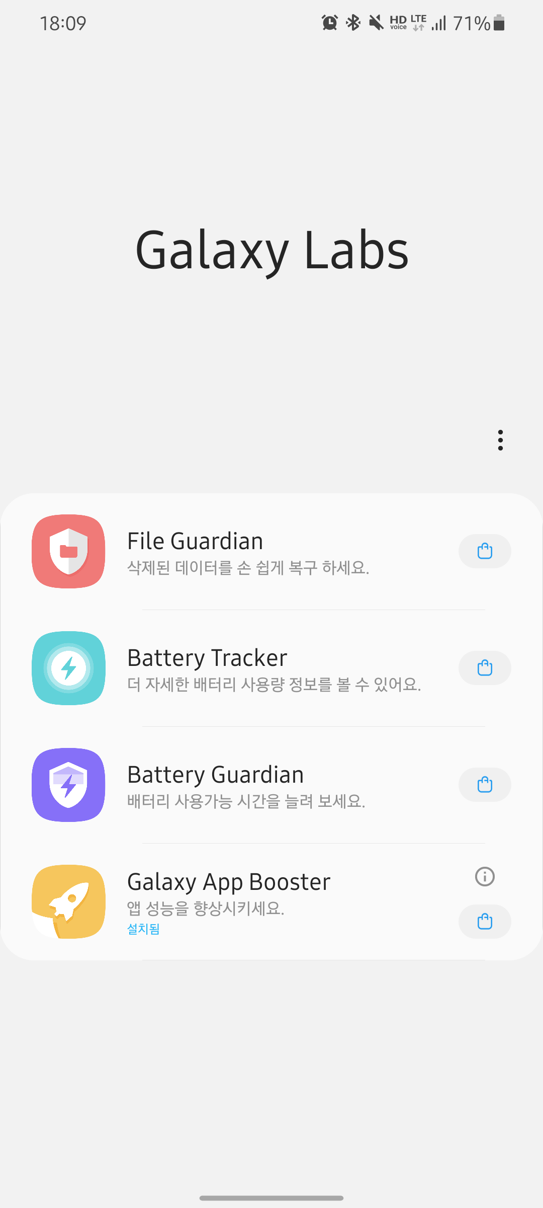 Galaxy Labs는 갤럭시 스토어(Galaxy Store)에서만 설치할 수 있는 앱입니다! 이 앱은 삼성전자에서 직접 만든 앱이기 때문에 안심하고 사용할 수 있습니다! Galaxy Labs를 설치한 후 앱 내에서 Galaxy App Booster를 설치해 주세요.