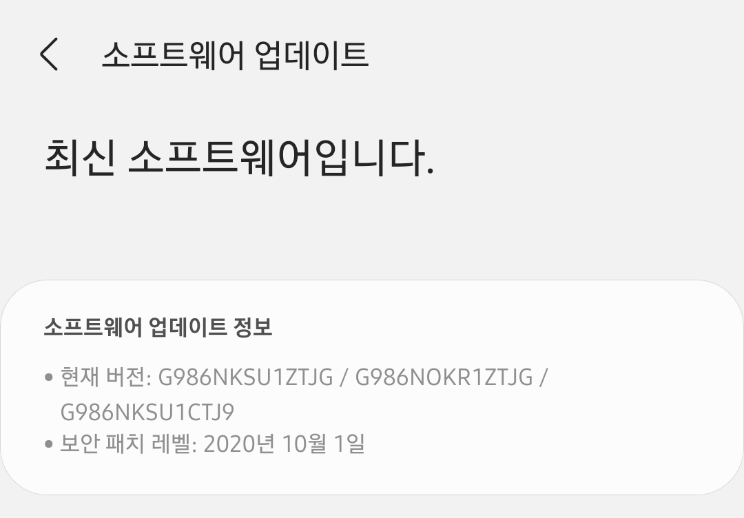 더 이상 업데이트할 내용이 없으면 소프트웨어 업데이트에서 '최신 소프트웨어입니다.' 문구를 확인할 수 있습니다! 또한 휴대전화 정보 - 소프트웨어 정보 로 들어가면 One UI 3.0 버전과 안드로이드 11 버전이 잘 적용되어 있음을 확인할 수 있습니다~!